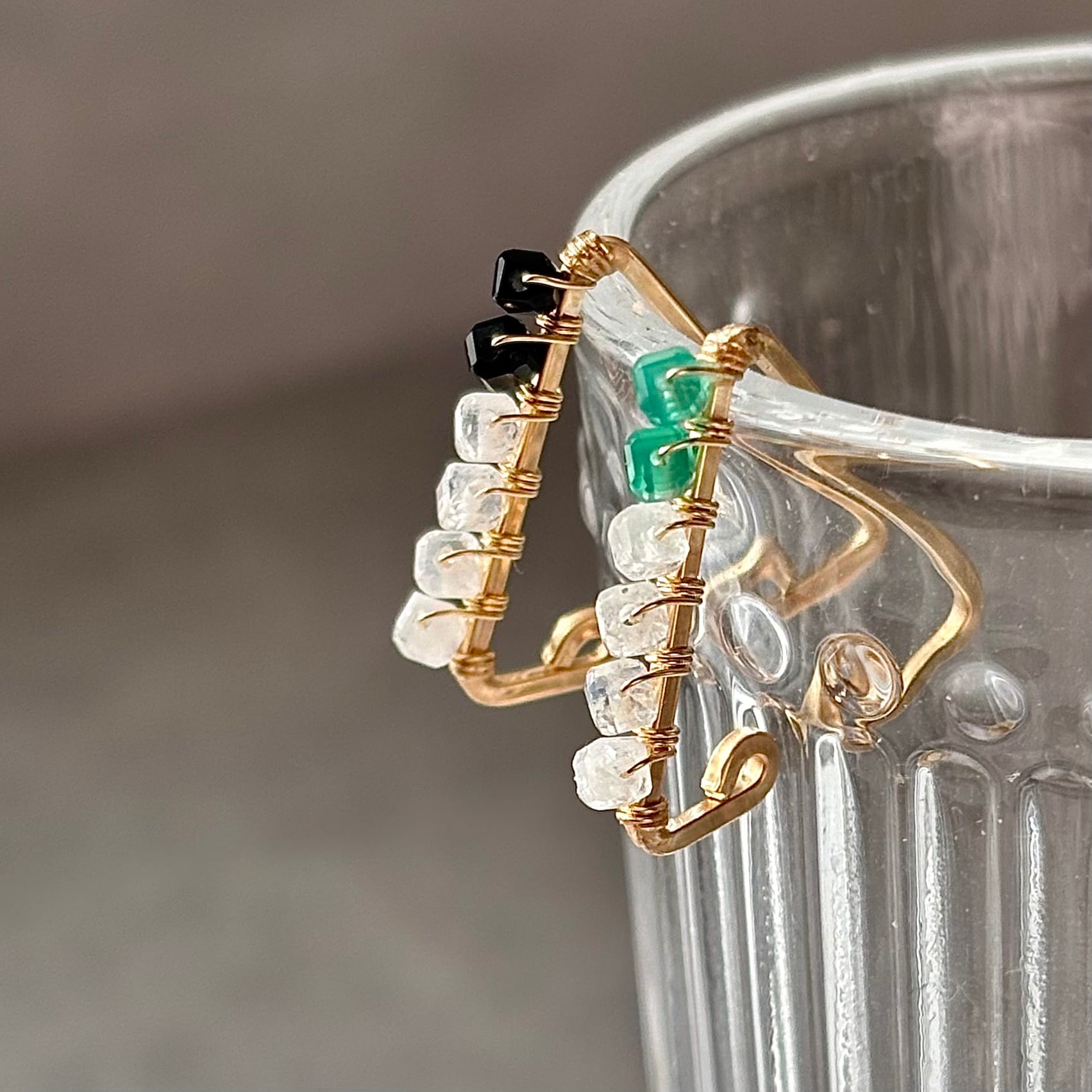 #milimili901 #14kgfイヤーカフ #レインボームーンストーン #ブラックオニキス #グリーンオニキス #春夏イヤーカフ #上品アクセサリー #ハンドメイドアクセサリー #エレガント #日常使い #特別な日に