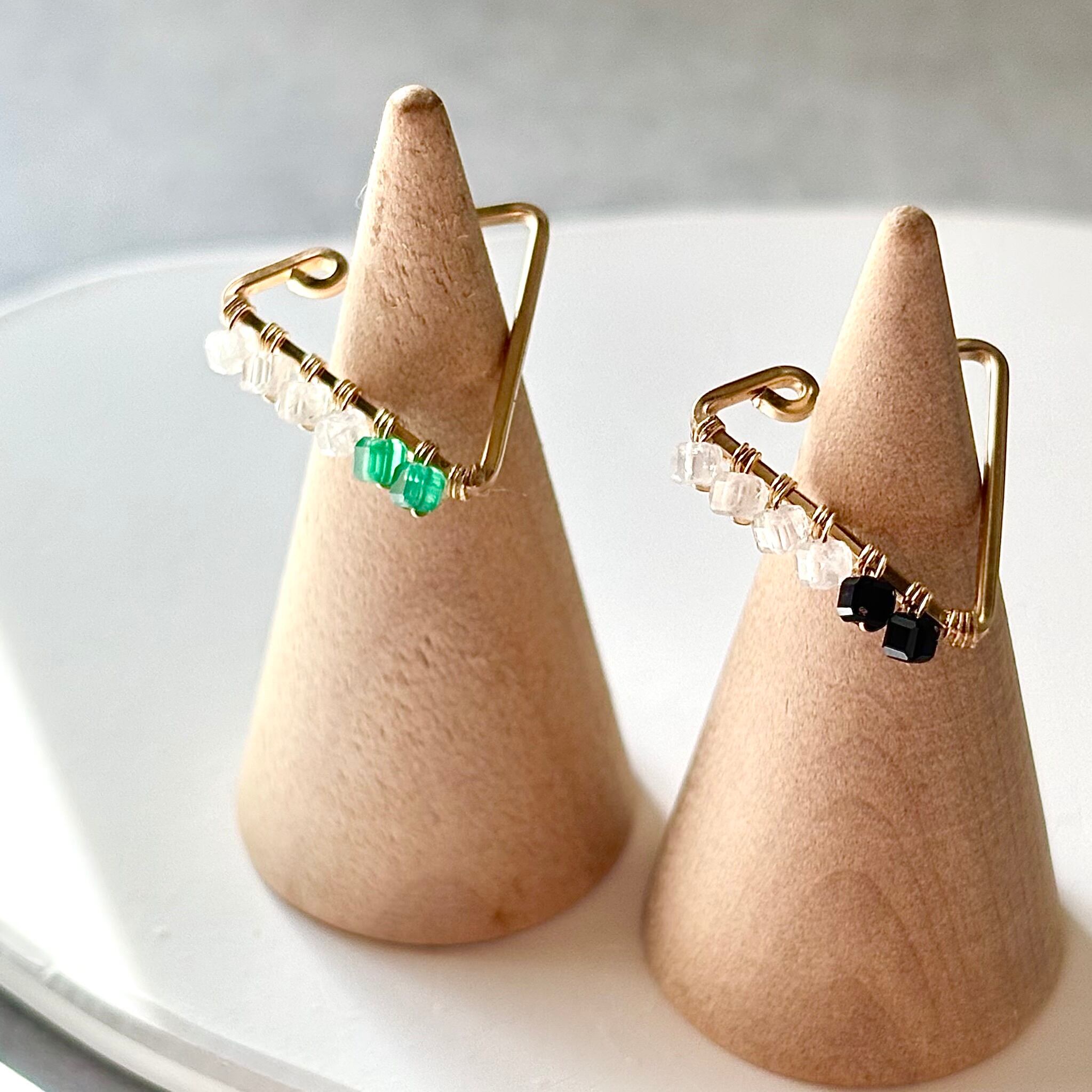 【選べる天然石】14kgf レインボームーンストーンとオニキスのラインイヤーカフ/グリーン・ブラック