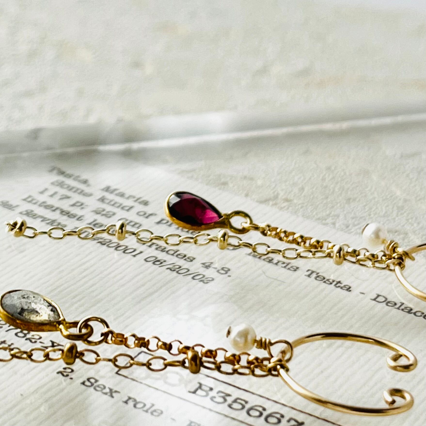 ロングセラーの『ラブラドライトとベビーパールのイヤーカフ』にガーネットが仲間入りしました。