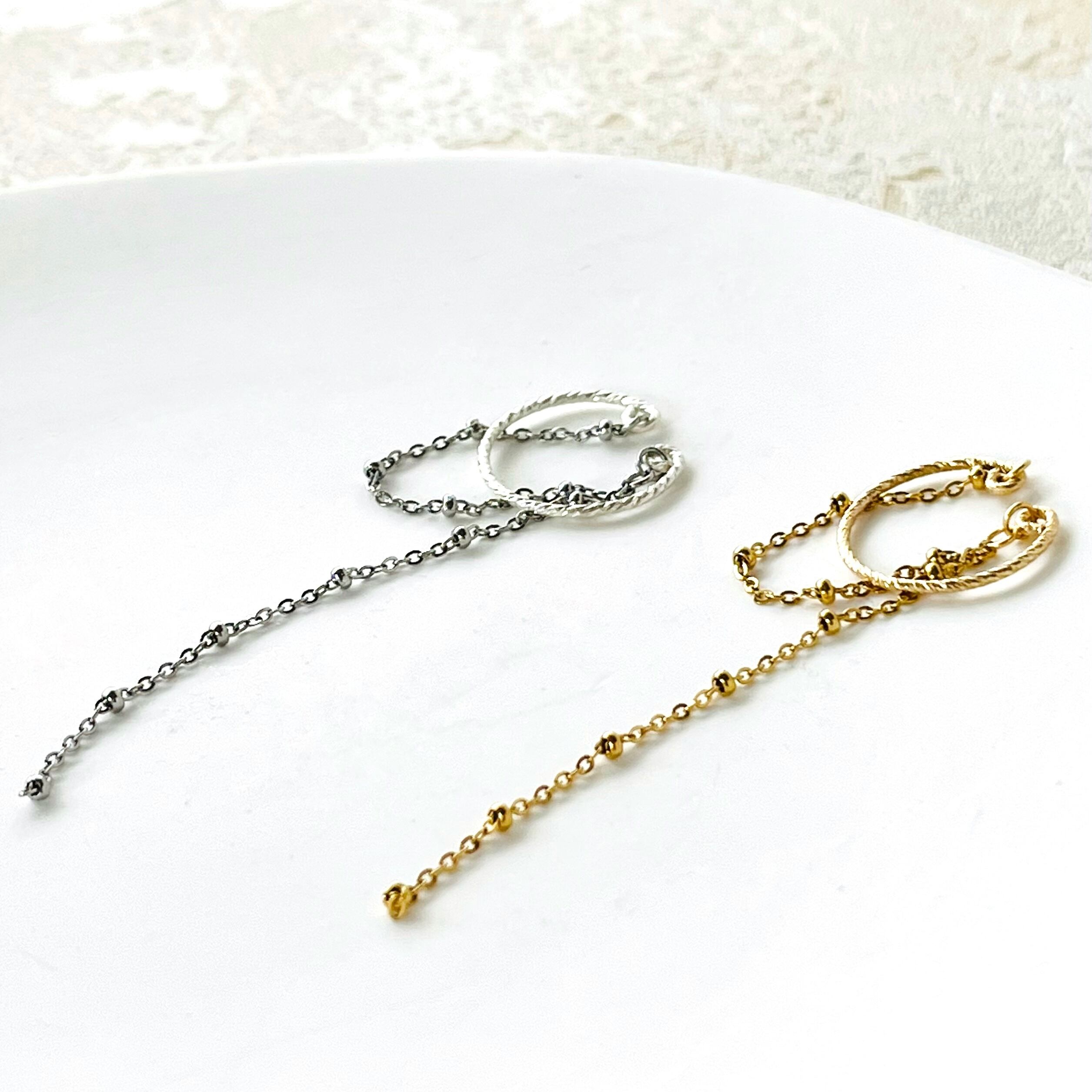※左右の耳で使用しているとチェーン同士でねじれが生じる場合がございます。着けたい方向で持ちチェーンのねじれを解消すると、きれいに着用して頂けます。